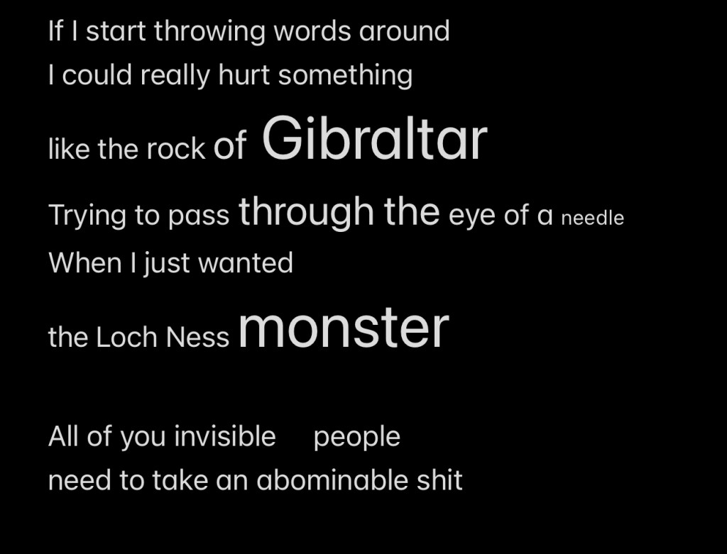 Will I overdose on the nose of propranolol that I’ll take for the ache in my heart when we part? Or will we gleelessly split in frigid hysteria all stinky and dead from smoked fish with listeria?